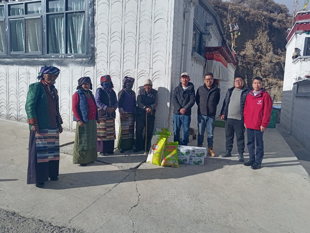 张肖友(右一)与援藏干部、在藏干部一起到结对帮扶群众家里走访慰问