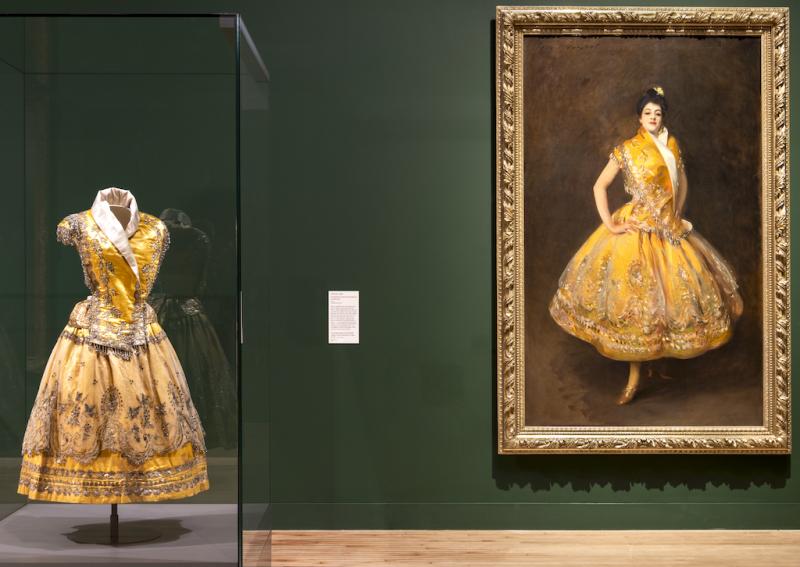 展览现场,西班牙野生舞者《La Carmencita》(约1890)与同款服装共同展示
