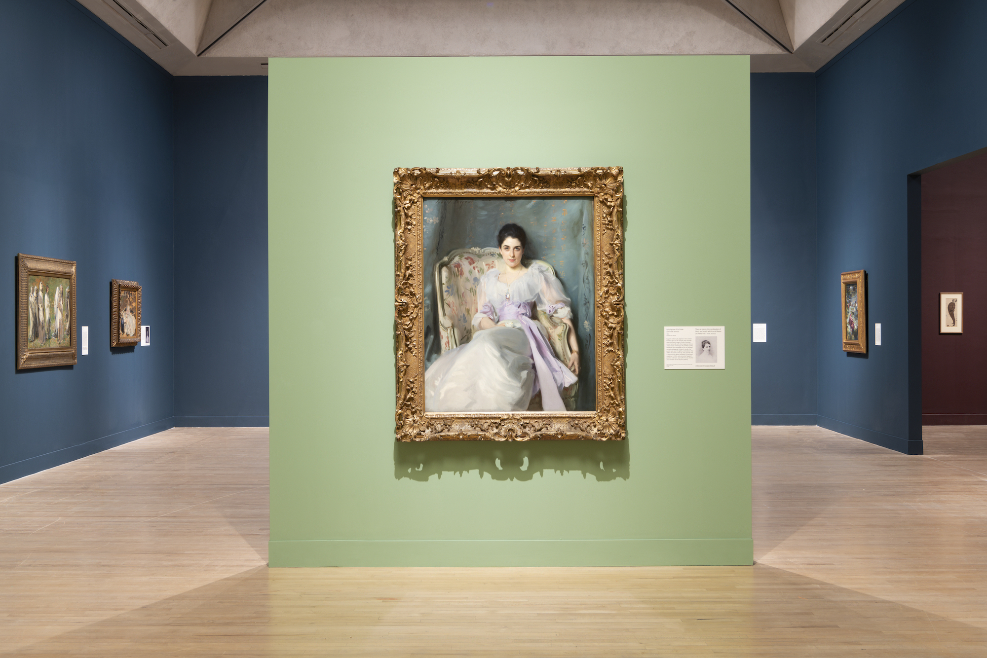 展览现场,萨金特,《沙逊夫人》(1907年)和歌剧斗篷(约1895年)