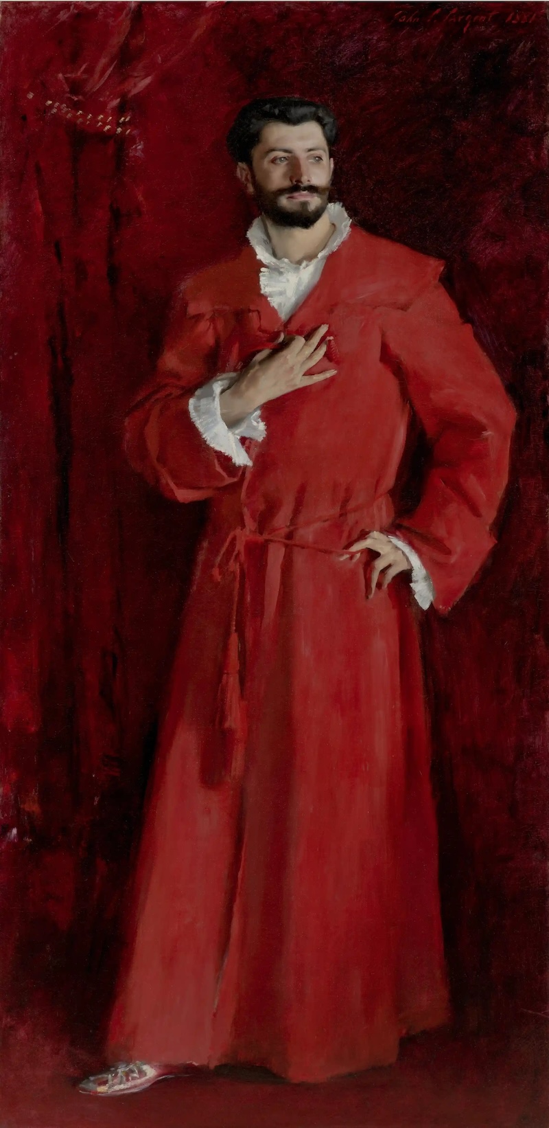 这种细致入微的服饰学术研究是一种错误的。艺术创作是虚构的,而不是一堆事实的混合物,没有人比萨金特更清楚这一点。作为生活在欧洲的美国人,他是一个世故老练、爱讽刺的人,就像亨利·詹姆斯(英籍美裔小说家)小说中的角色。事实上,詹姆斯确实是他的朋友,他们的艺术之间有微妙的联系。两人都可能被误认为保守派。但詹姆斯通过一种闪烁而令人心碎的力量探索人类心灵的颤动和复杂的道德本质。萨金特同样是一位细腻而神秘的肖像画家,他用印象派式的笔触勾勒出人物的“性格”。