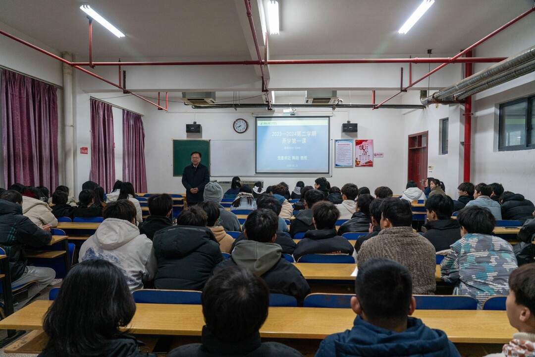 湖南日报·新湖南客户端2月28日讯(通讯员 易桓竹 刘毓)春到万物苏,奋进正当时。2月26日,正值新学期开学报到日,湖南化工职业技术学院党委书记陈超作为设计23101、23102班的班级导师,来到教室为学生讲授“开学第一课”,引导学生坚定理想信念,勇挑时代重担。