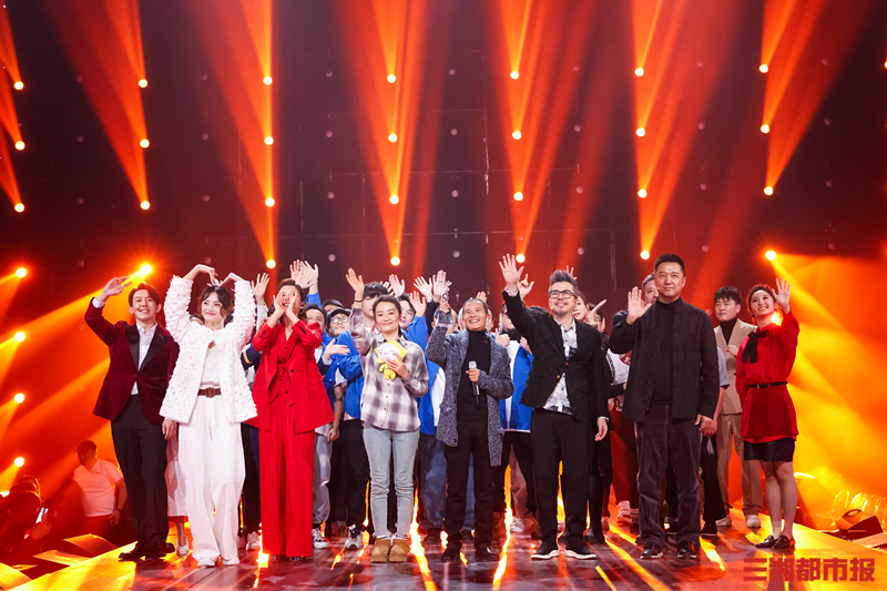(石冬(前排左四)获得《星光大道》周冠军。受访者供图。)