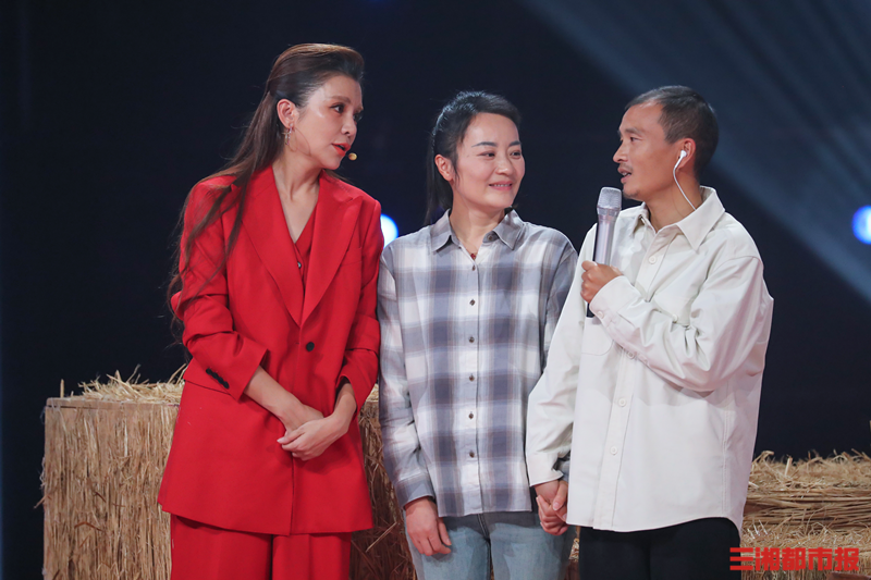 (石冬(左)与妻子(中)登上星光大道的舞台。)