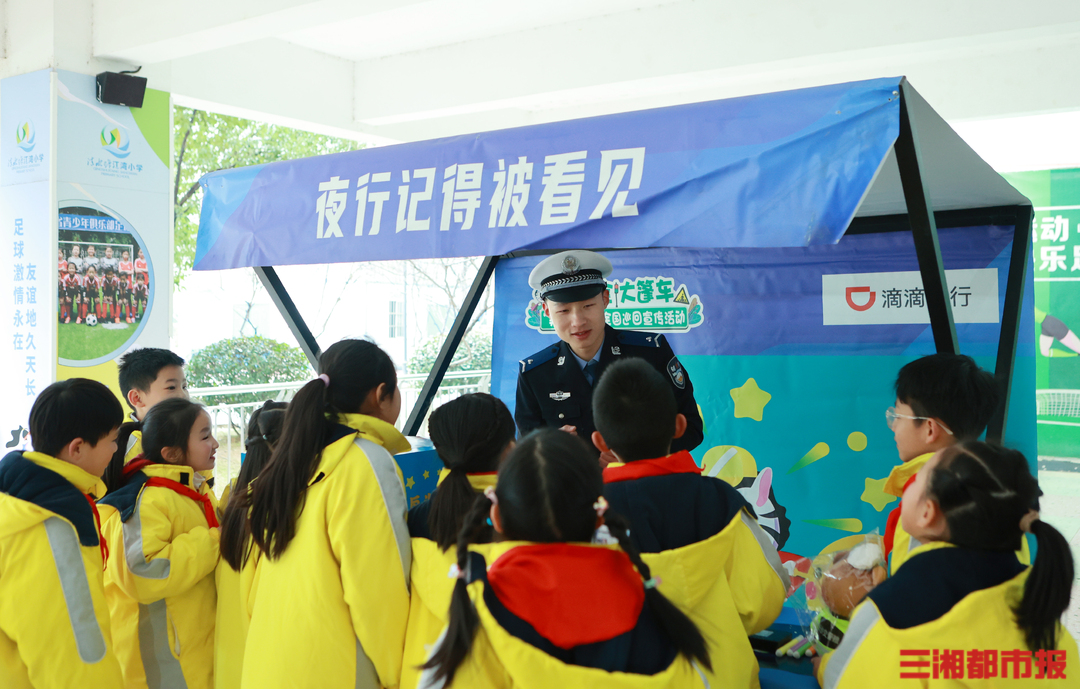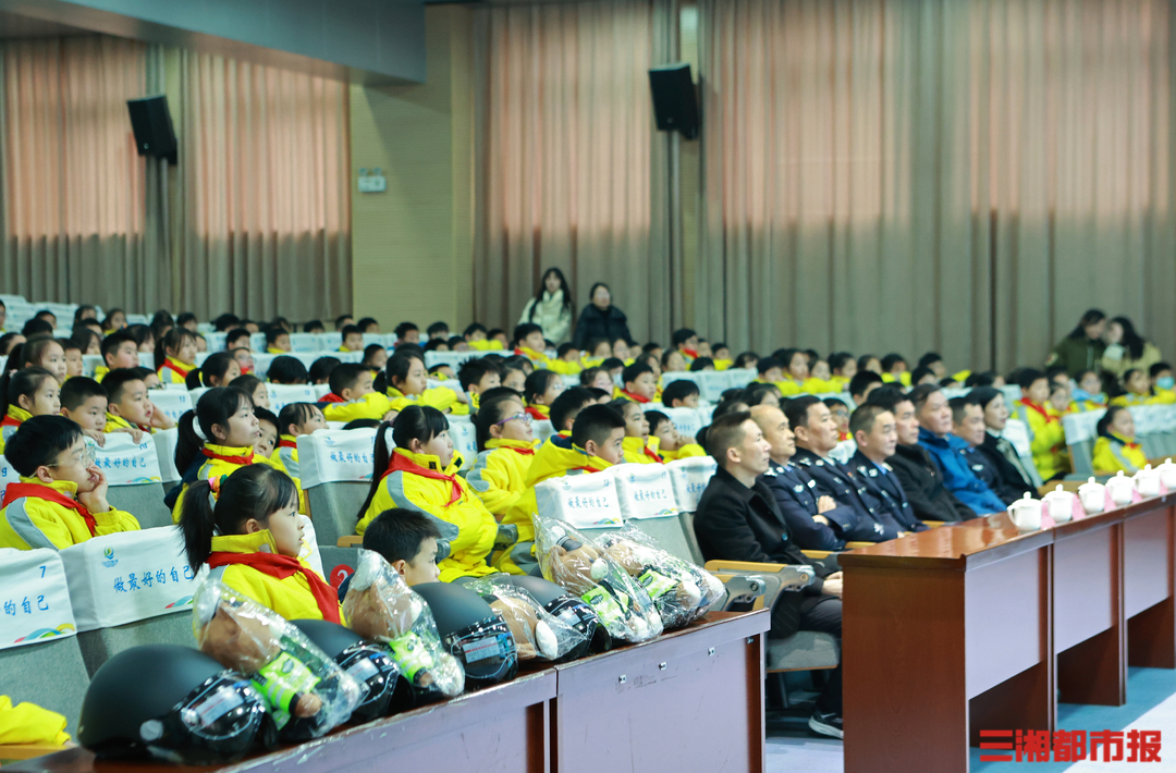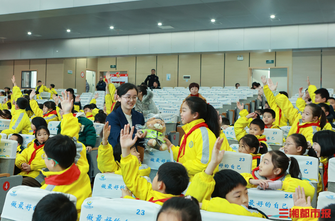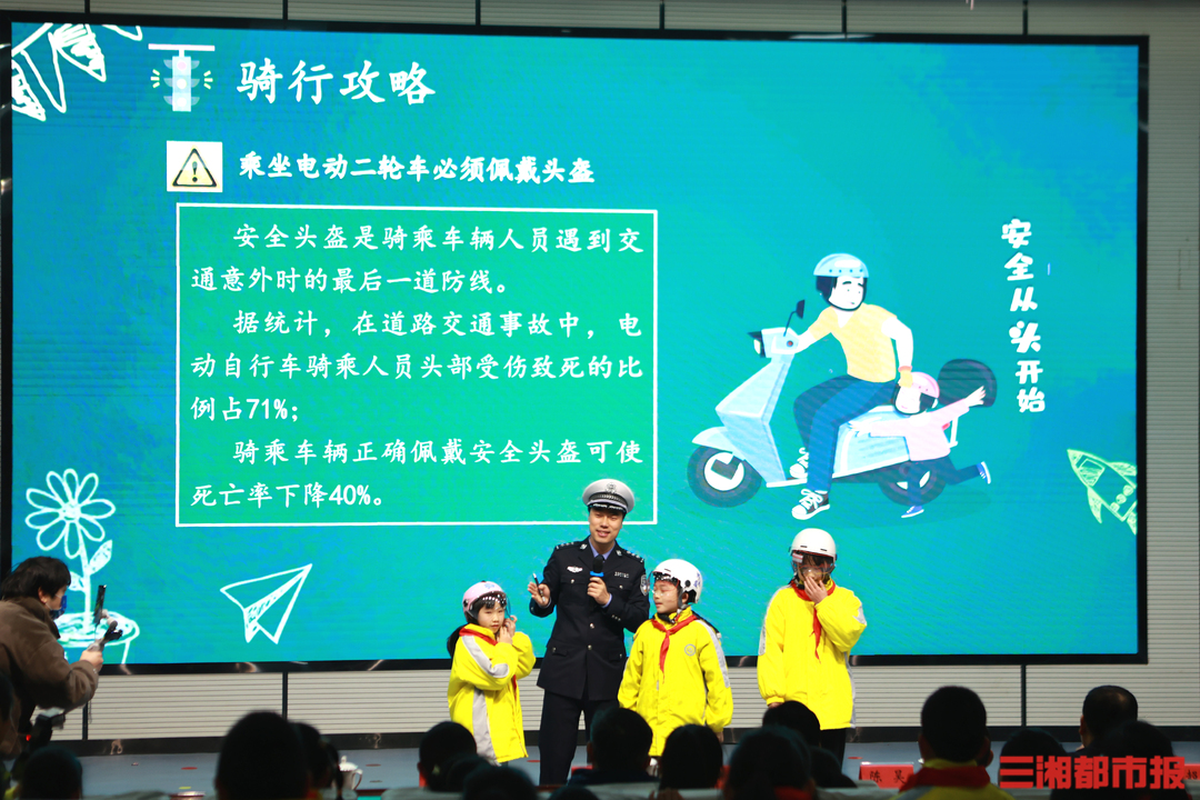 三湘都市报·新湖南客户端2月29日讯(全媒体记者 虢灿 通讯员 石双权)“骑自行车上路要年满多少岁?”话音刚落,几十只小手举了起来。“12岁!”回答正确的幸运儿得到了心仪已久的交警小熊,引来同学们“哇”声一片。