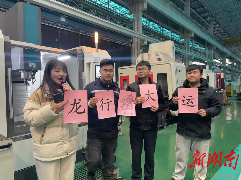 而在智能制造实训基地,三一职院数智工程学院的师生们也在依次展示着各个专业的“绝活”。工业机器人应用的师生们通过编程,对机器人进行视觉分析训练后,机器人乖乖听话,精准完成抓取、投放动作,实现对物品的自动分拣;软件技术的老师们演示着自己制作的小游戏;焊接挖机、焊接吉他等智能焊接专业学生奇思妙想的焊接作品也一一呈现,用技术鼓励职教学子“一技之长,能动天下”;数控专业制造的精密模具与精美模型整齐排列,学生们在老师指导下,现场操控价值过百万的数控机床,画出一条栩栩如生的龙,并为屏幕前的观众们送上新年祝福...“零部件产品都是高精尖的,容不得一点误差。”三一职院数控研发专业实训教师宾立介绍,“企业对有比较好的基础理论又有好的技能操作复合型人才,非常需求,我们就是在这个方向来培养。”像宾立这样的指导老师,自身就有多年企业工作经验,实训中带出来的学生,进入企业后能够迅速上手。