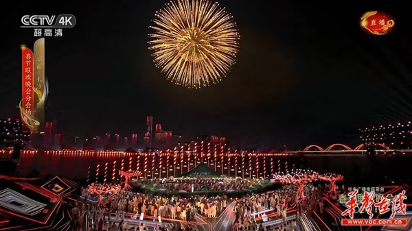 春晚首次落地长沙,春晚长沙导演团队分享了设计理念:主舞台构建出一棵生机盎然的科技树,一棵生生不息的生命树,一棵蓬勃生长的青春树。烟花大秀以绚烂的色彩、精湛的工艺和震撼人心的效果,在春晚舞台绽放了无与伦比的华彩。无人机滑翔机、搭载烟花等丰富的表演形式,让科技与艺术交融在长沙这座“世界媒体艺术之都”的夜空中,上演了一场精彩绝伦的“花火之舞”。