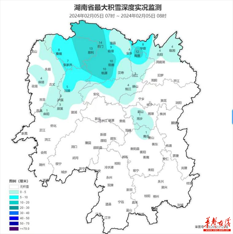 (湖南省最大积雪深度实况监测图)