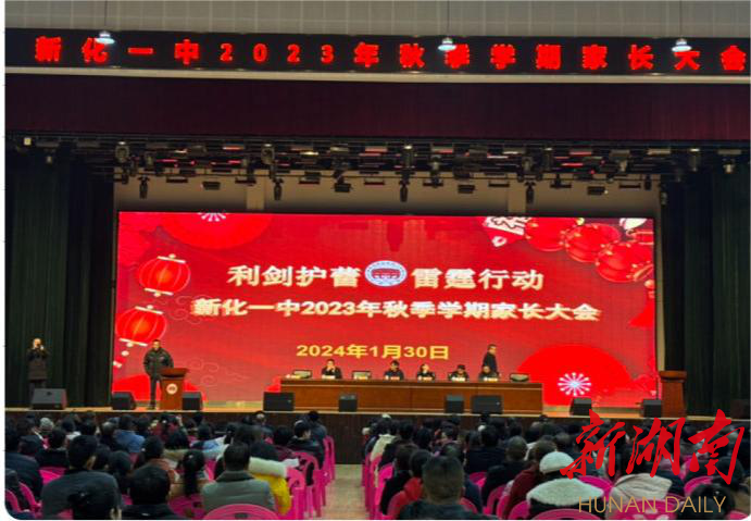 新湖南客户端2月1日讯(通讯员 刘旺 曾维维)为践行学校、家庭、社会三位一体的现代教育理念,加强家校沟通,形成共育合力,为孩子们的健康成长保驾护航,该校于2024年1月20日上午十点在体育馆召开了以“利剑护蕾·雷霆行动”为主题的全校学生家长大会。