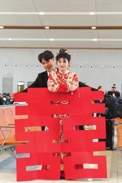 侯亚丽告诉记者,车上有很多乘客给他们让座,还有乘客帮忙搬行李,车厢里充满了对他们的祝福,“每个人都祝我们新婚快乐,百年好合,早生贵子。”
