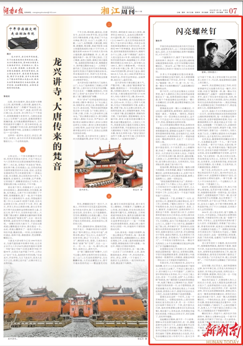 一个温情的日子,催开了春天的笑容。南来的燕子,和往年一样,还在团山湖的堤岸眺望雷锋的身影,它们不知那颗闪亮的螺丝钉,一别62年,去了哪?为什么再也没有回到自己的家乡?却成为人们永恒的牵挂。