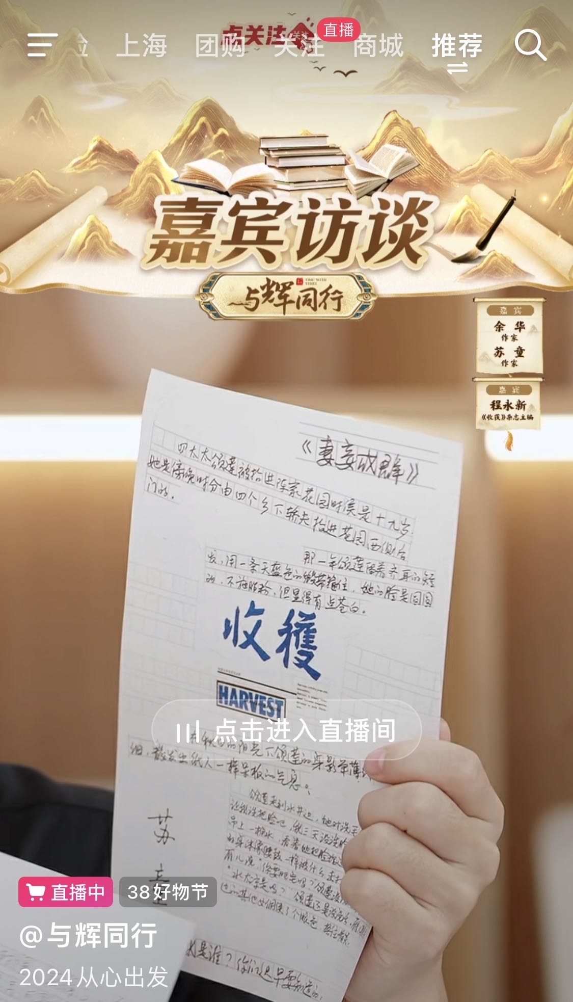 《收获》主编程永新也认为上直播间是一种非常好的尝试:“这个方式被证明有效,那我们就有必要去尝试。因为中国的老中青三代的文学读者规模其实是惊人的,等待我们用各种方式去走近。”