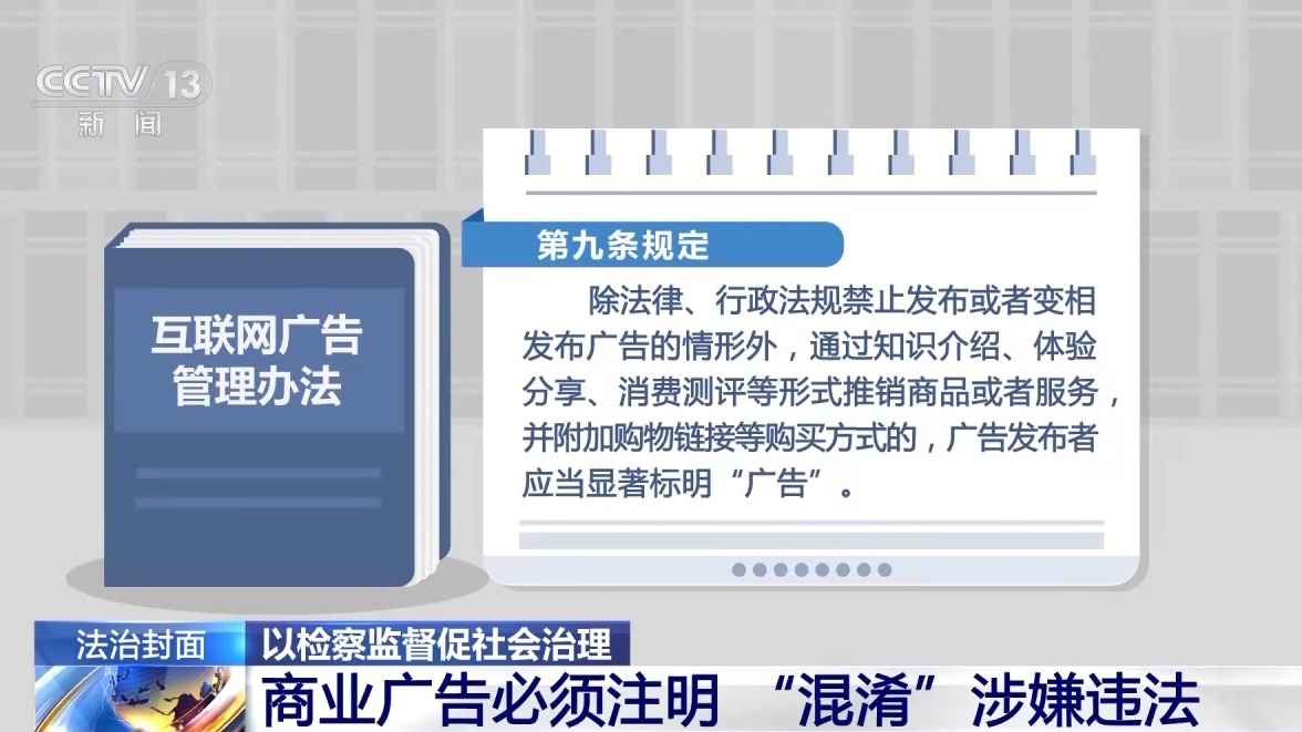 2023年5月1日起施行的《互联网广告管理办法》第九条规定:除法律、行政法规禁止发布或者变相发布广告的情形外,通过知识介绍、体验分享、消费测评等形式推销商品或者服务,并附加购物链接等购买方式的,广告发布者应当显著标明“广告”。
