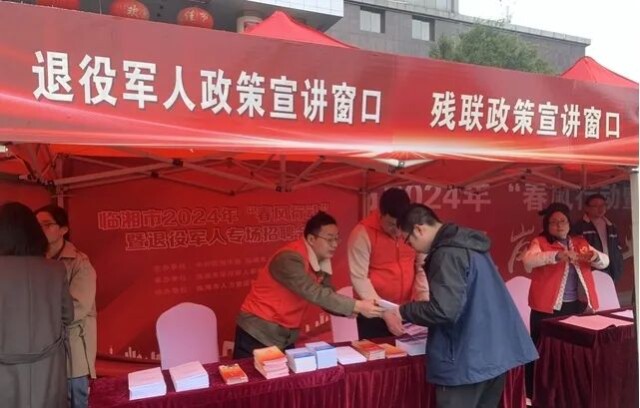 临湘市退役军人事务局也在该县2024年“春风行动”暨就业援助月专项活动大型现场招聘会上,设置了军人专属区,对退役军人的职能定位、入职优惠政策等进行政策宣讲,还邀请法律顾问提供法律咨询。
