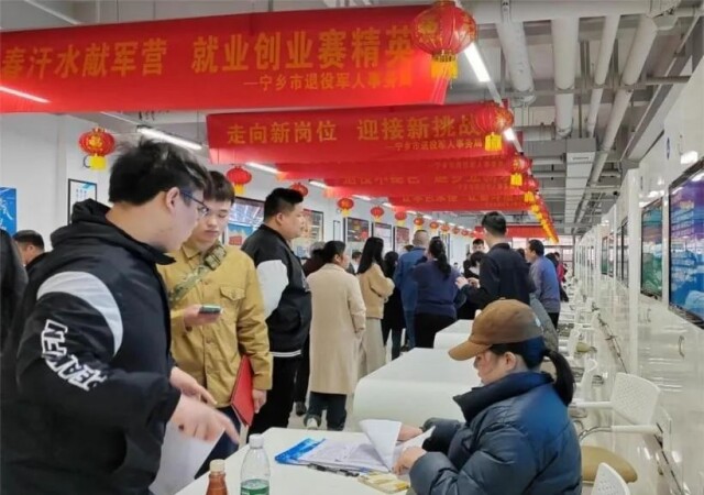 (宁乡市2024年“春风行动”退役军人暨家属专场招聘会现场。通讯员 摄)