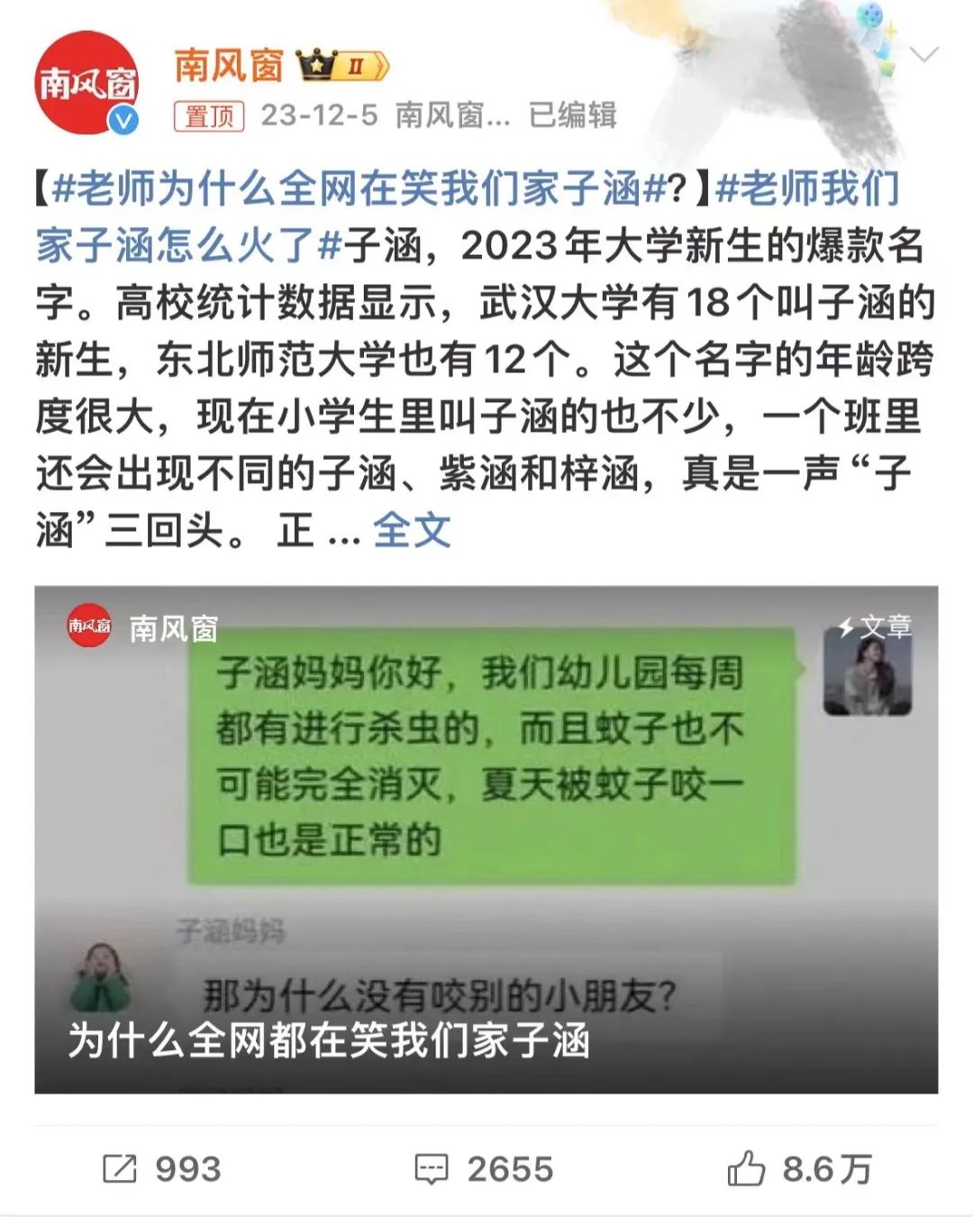 之前被网友玩坏的“我家子涵怎么了”,就是个典型例子。去年年底,一位幼师晒出家长群群聊记录。因为孩子被蚊子咬了,一位“子涵妈妈”向老师兴师问罪:“幼儿园就这样看孩子的吗?为什么没有咬别的小朋友?”