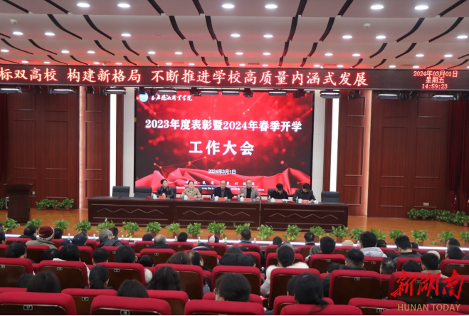 湖南日报·新湖南客户端3月4日讯(通讯员 李家语 刘雨翔)为全面部署2024年工作,动员全校教职工凝心铸魂、聚焦目标、开创新局,3月1日下午,娄底潇湘职业学院在图书馆多功能报告厅召开2024年春季开学工作大会。