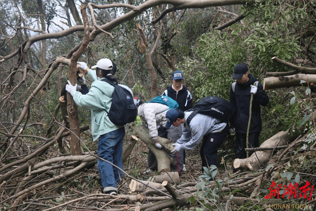 初春期间出现的霜冻冰雪天气,导致岳麓山景区内出现了较为严重的树木倒伏现象。3月2日,湖南财政经济学院体育学院学生志愿者联合长沙岳麓蓝天救援队、长沙市户外登山运动协会在岳麓山景区开展受损植被与道路清理修复活动,为保护岳麓山生态环境作贡献。