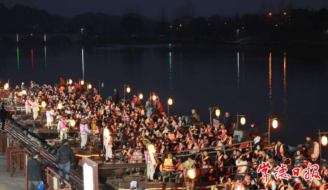 《桃花源记》山水实景演出迎来新年首批游客。
