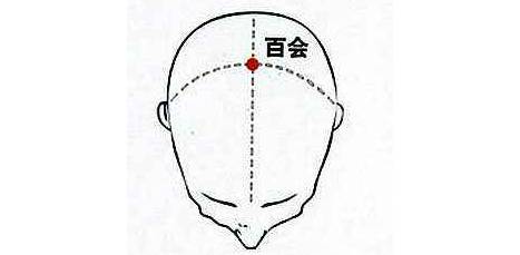 百会穴属督脉,在头顶正中央,是人体的最高点,当前发迹正中直上5寸。