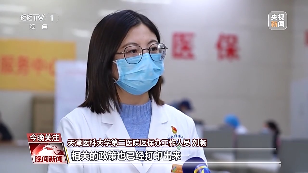 天津医科大学第二医院医保办工作人员 刘畅:国家医保给报得多了,患者掏得少了,相关的政策也已经打印出来,放在我们的医保窗口,也与我们患者服务中心进行了政策上的交接。