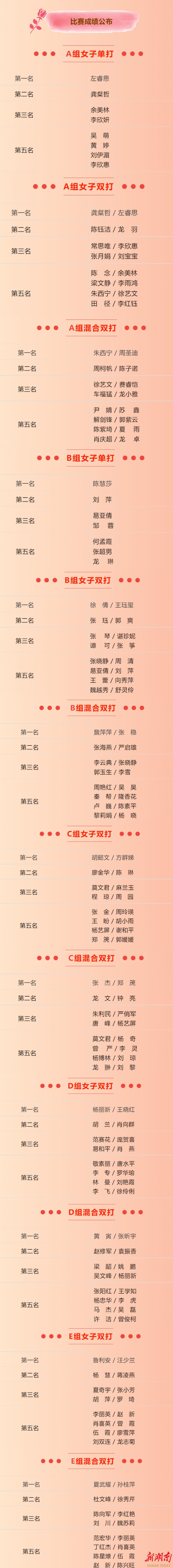 比赛按年龄段分组,设置女子单打、女子双打、混合双打、夫妻双打四个项目,年龄跨度从16岁到70岁。