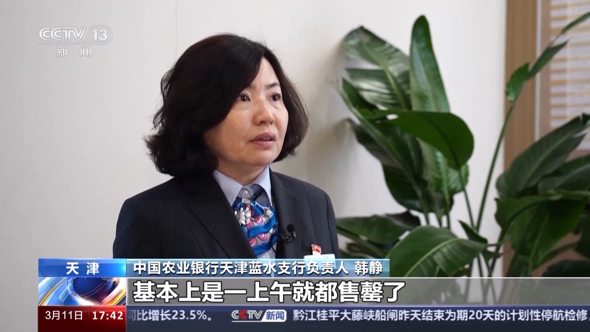 中国农业银行天津蓝水支行负责人 韩静:我们一共发售了8000多万元的额度,基本上是一上午就都售罄了。