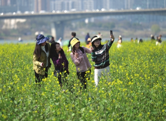 “赏花游”是春日出游计划中的“顶流”,携程数据显示,平台上“赏花”搜索热度近一周环比上涨330%,同比增长超2倍;近期赏花景区的门票日均预订量同比增长近50%。在长沙,盛放的油菜花成了众多游客春天奔赴的第一场“花事”,湘府路大桥、福临镇、含浦街道……处处是人们赏花的身影。