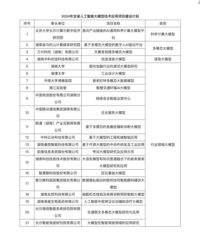 湖南发布人工智能大模型技术应用项目建设计划 21个项目入选