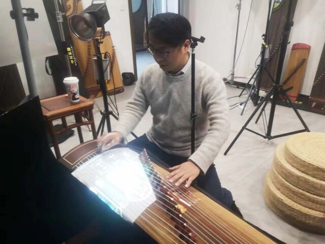 在古筝展示间,该项目负责人、上海同济大学电信学院教授曾歆打开投影仪,在曲目库中选择了一首《荷塘月色》,投影仪便投下光标,演奏者按光标依次弹拨,舒缓优美的音乐旋律便从手指下流出,通过小麦克风扩音,再借助摄像头在抖音平台上直播,很快就圈粉一大堆,引得不少粉丝点赞。