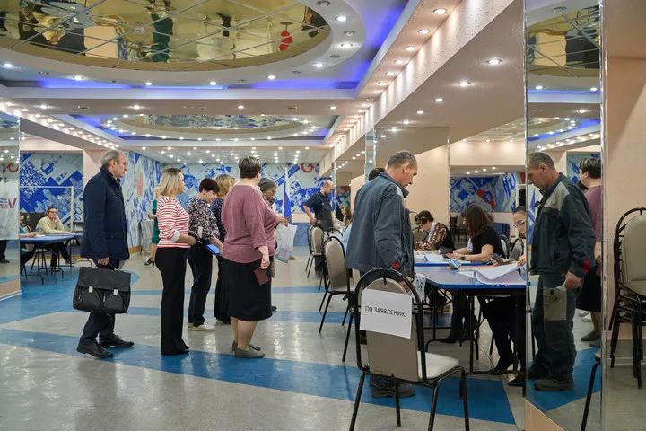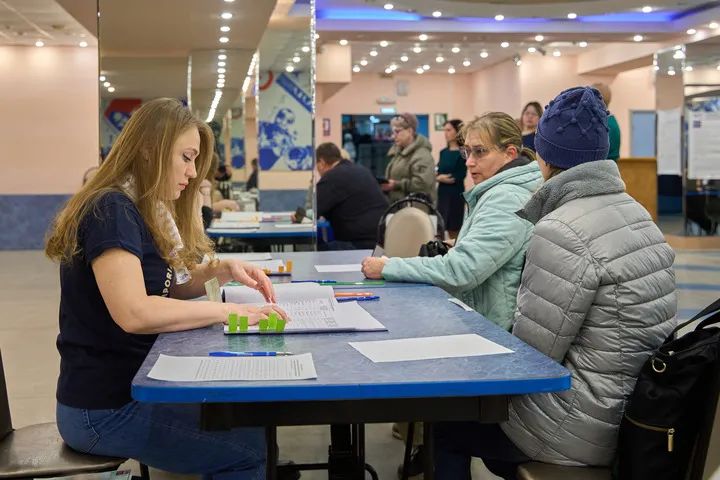 3月15日,当地居民在俄罗斯符拉迪沃斯托克登记参加总统选举投票。新华社发(郭飞洲摄)