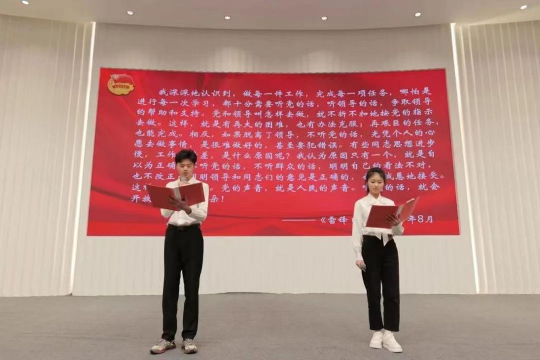 仪式上,该校团委主持团成员朗诵了雷锋日记,雷锋同志以笔为剑,书写着对人民、对祖国的无限热爱与忠诚。雷锋的日记让我们永远铭记这位英雄,让他的精神在我们心中生根发芽,绽放出更加绚烂的花朵。
