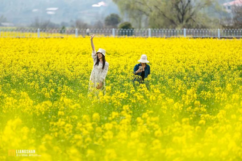 春意渐浓,望城茶亭油菜花开,游客在花海中拍照打卡。长沙晚报通讯员 梁山 摄