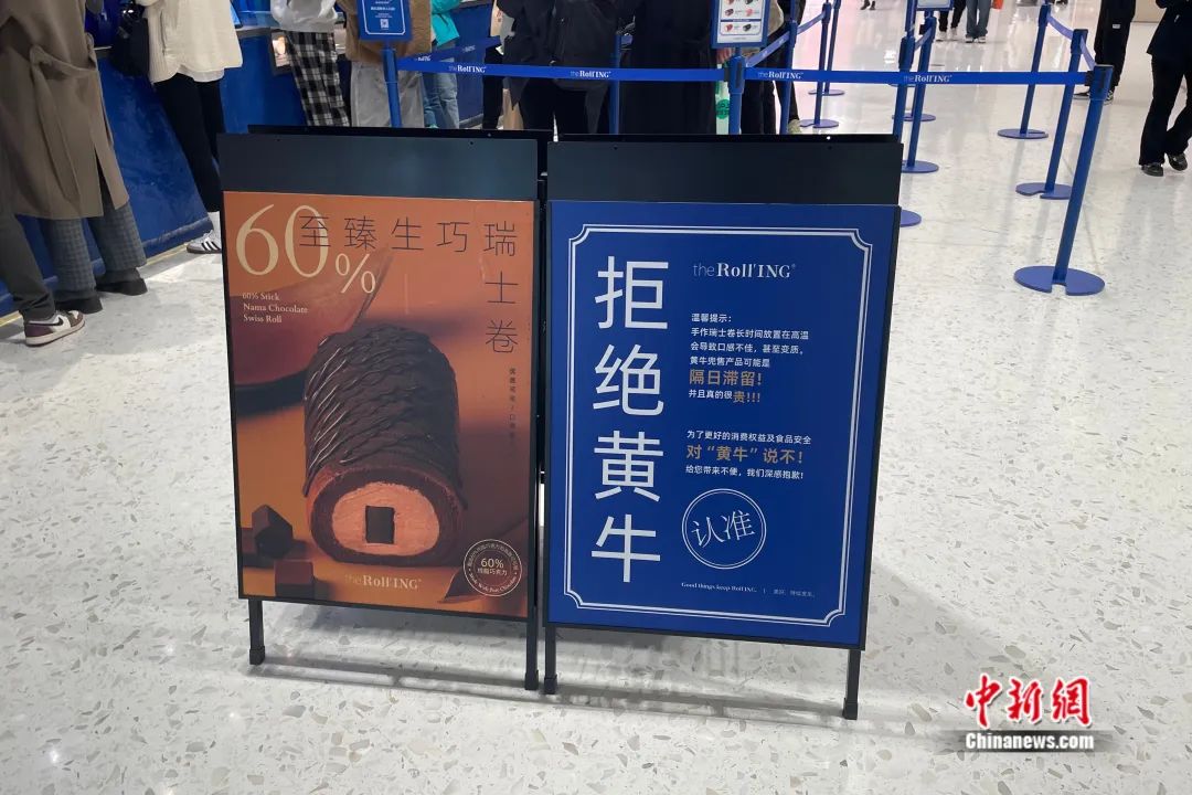 该品牌还发起了“举报有奖”:凡发现排队队伍中有“黄牛”并举报成功者,可单笔免费;凡发现门店店员和“黄牛”存在不法勾当并举报成功者,可享Roll'ING瑞士卷免费吃一整年。