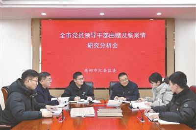 江苏省高邮市纪委监委将党员领导干部参赌涉赌问题线索纳入日常监督重点,建立问题台账、梳理案情线索、强化监督检查,严查背后的作风及腐败问题。图为近日,该市纪检监察干部会商研究相关案件。谭倩 摄