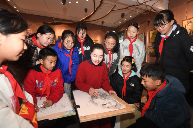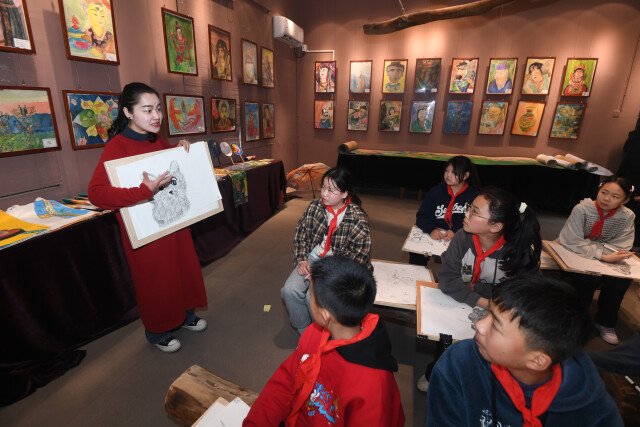 付出就有收获。如今,校园的每个角落都充满了属于孩子们的色彩,这比任何华丽的装饰都要更加珍贵。除了校园里的五彩壁画、彩色的脚印楼梯,还有与孩子们共同设计打造的儿童美育工作室以及星光博物馆,里面存放着许多孩子们的油画、水彩等作品。而他们的五彩足迹,正走出乡村,走向更远的地方。