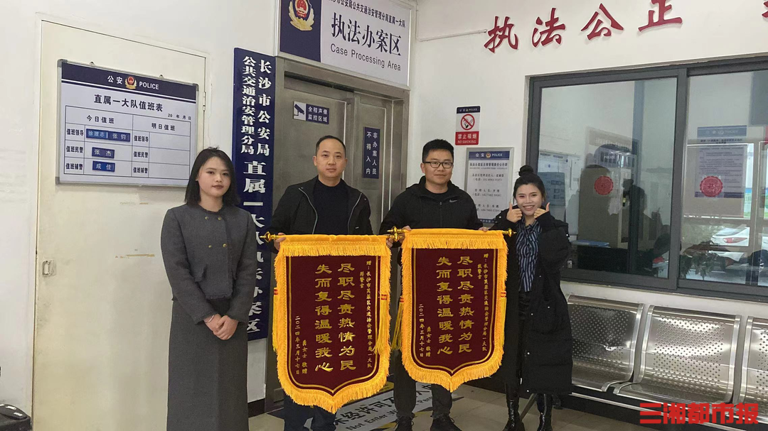 “不到1个小时就帮我找到了包,东西都没丢,长沙公交公安太棒了!”拿回遗失财物,龚女士开心地表示,第一时间发朋友圈分享自己在长的经历。3月18日,她特地带着连夜制作的两面锦旗登门致谢。