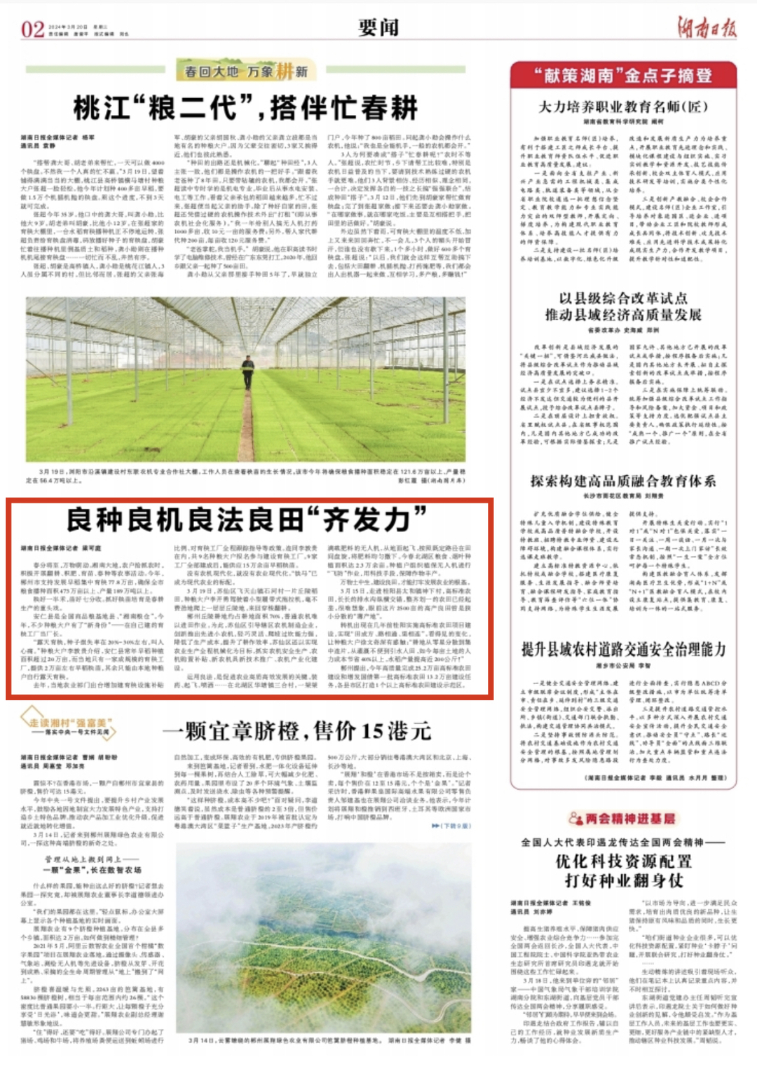 春分将至,万物萌动。湘南大地,农户抢抓农时,积极开展翻耕、积肥、育苗、春种等农事活动。今年,郴州市支持发展早稻集中育秧77.8万亩,确保全市粮食播种面积473万亩以上、产量189万吨以上。