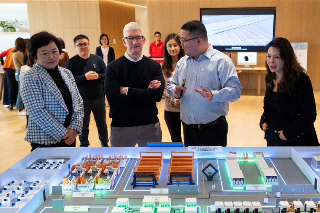 苹果静安店开业前夕(3月20日),库克与比亚迪、蓝思科技和长盈精密三家供应商在苹果上海办公室举办了一场小型分享会,集中展示了其在智能制造、绿色制造以及人才培养方面的最新成果和进展。