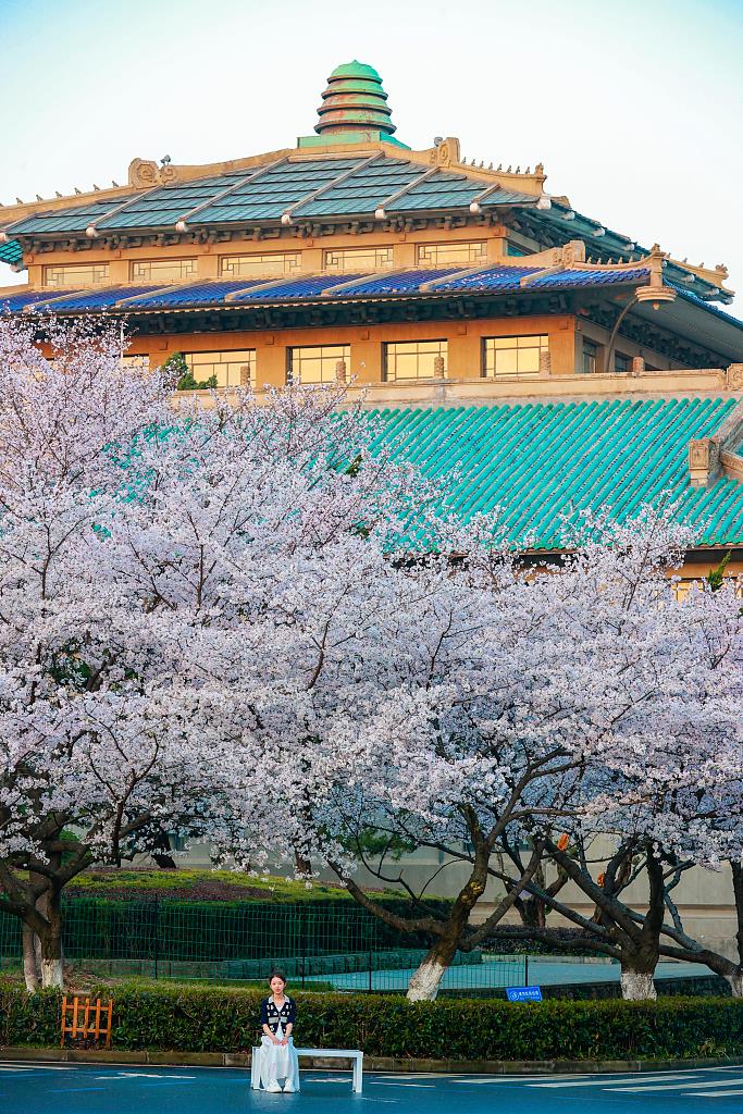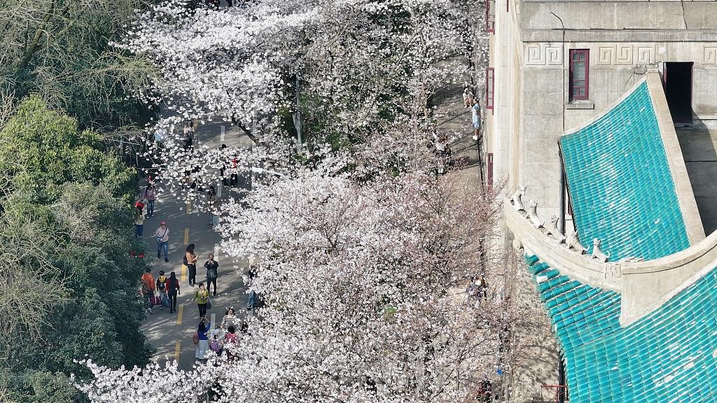 “武汉大学的樱花又开了!”每年3月,武汉大学粉白的樱花绵延盛放,成为热门赏樱胜地。今年,武汉天河机场还开通了机场直达东湖磨山樱花园的赏樱专线,方便游客出行。