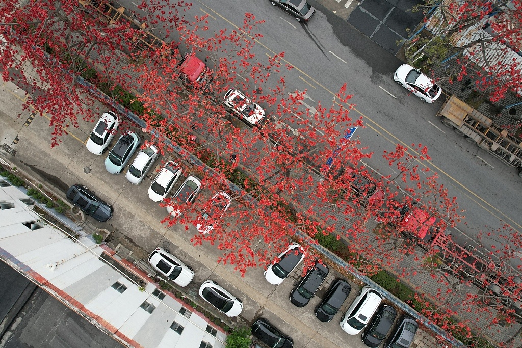 广东的木棉花迎来最佳观赏期,深圳南山区街头的木棉花红如炬似火,生机勃勃。