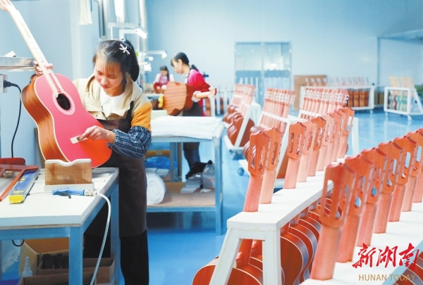 短短数年间,吉他产业空白的东安县,崛起“吉他小镇”,涌现一批技艺精湛的“吉他工匠”。