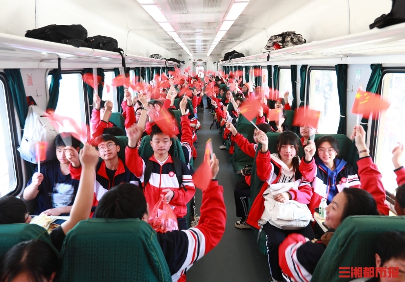 首趟研学专列于当日13时抵达韶山火车站。接下来两日,同学们还将参观毛泽东同志故居、毛泽东广场、毛泽东同志纪念馆和韶山学校等红色教学参观点,开展献礼仪式、展教结合、思政大课、主题班会等活动。