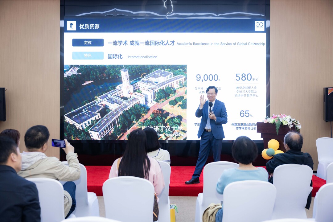 (宁波诺丁汉大学党委书记沈伟其教授在介绍学校特色。)