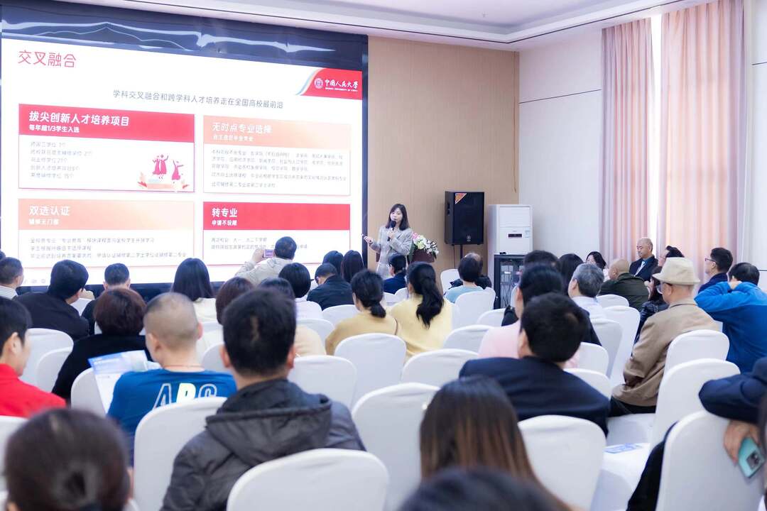 (中国人民大学文盈盈老师宣讲招生政策。)