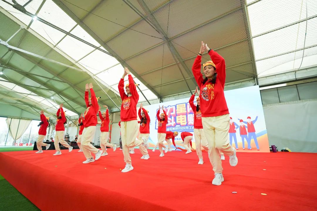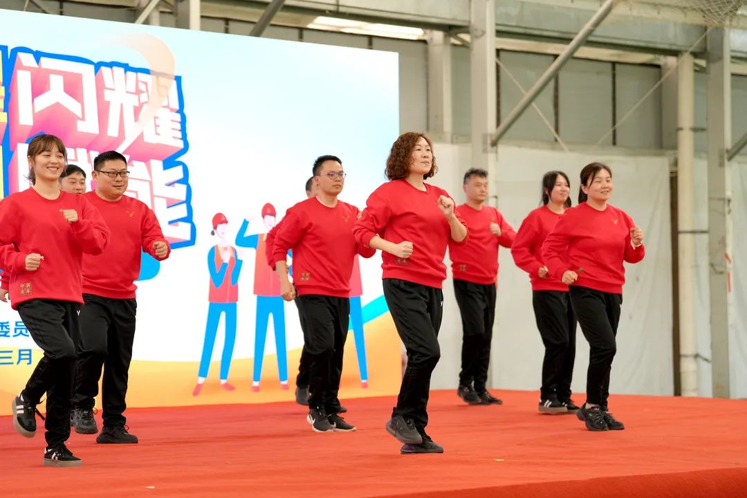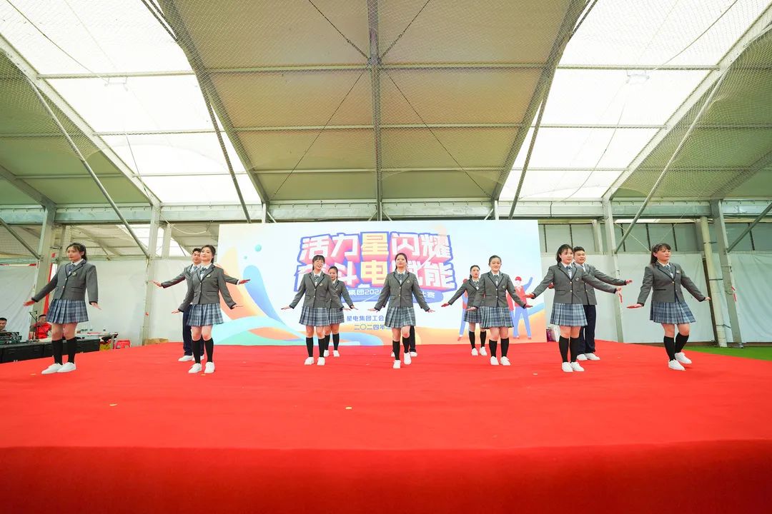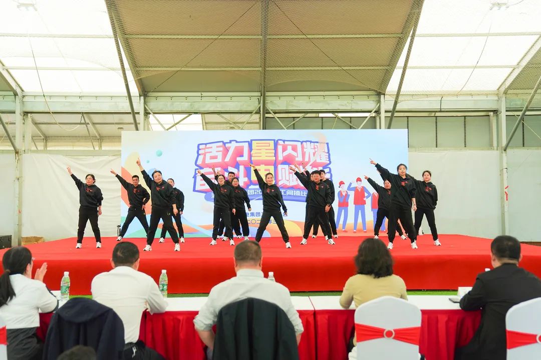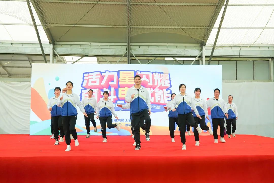 赛场过程中,各参赛队伍身着靓丽的队服,喊着响亮的口号,伴随着欢快的音乐旋律,逐一上台展示。他们带来的工间操展演,动作编排新颖,队形变化流畅,参赛队员们精神饱满、舞姿优美,充分展示了星电集团广大干部职工积极向上、朝气蓬勃的精神面貌。