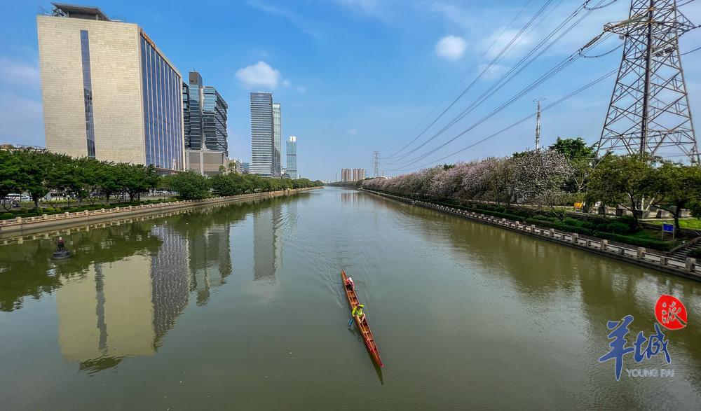 3月25日,已经“入夏”的广州,有人在海珠区黄埔涌泛舟。羊城晚报记者 梁怿韬 摄