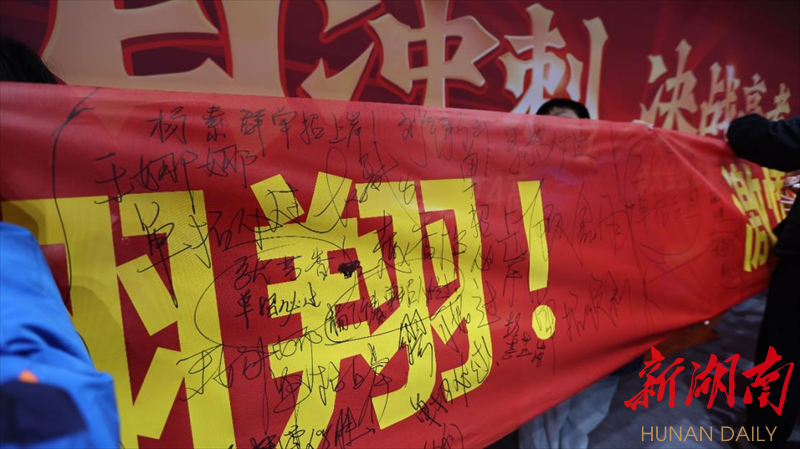 2023年,长沙市唯上商务科技学校在高考中取得了可喜的成绩,赢得社会广泛赞誉,2024年,学校将力争高考成绩再上新台阶。开学典礼上还举行了高考誓师大会。全体教师和学生现场进行了宣誓,斗志昂扬的誓言响彻全场。高三的同学和老师们还在百米必胜长卷上签署必胜之名,有的画上心中吉祥的图腾,有的许下成功的愿望,有的写下对自己和同伴的祝福。
