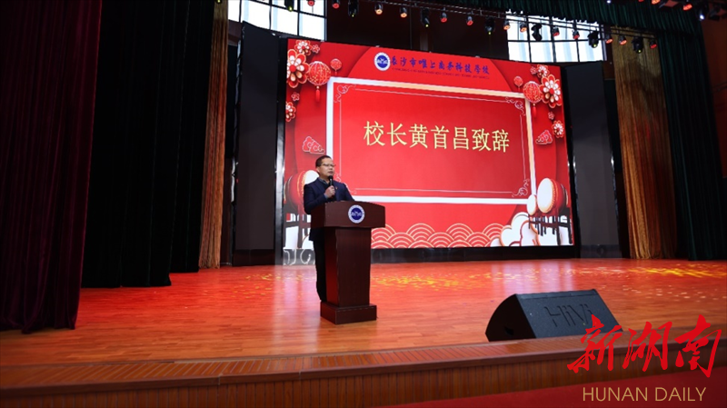 新湖南客户端3月7日讯 3月5日,长沙市唯上商务科技学校全校师生在学校党支部的安排部署下,欢聚在学校体艺馆,举行“龙腾虎跃展新颜,热辣滚烫赢一场”新学期开学典礼暨高考誓师大会。
