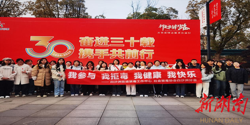 新湖南客户端3月5日讯(通讯员 李露)3月3日,第三届“行走雷锋路.万名雷锋志愿者公益行”徒步节在雷锋家乡望城如期举行。为引导大众关注禁毒、了解禁毒、参与禁毒,传递“健康人生,绿色无毒”的生活理念,白沙洲街道禁毒工作中心以此次徒步活动为契机,将禁毒元素融入公益徒步活动中,在活动的第三个补给点长房越秀.星悦荟现场开展以“行走雷锋路 无毒健康行”为主题的禁毒宣传活动。