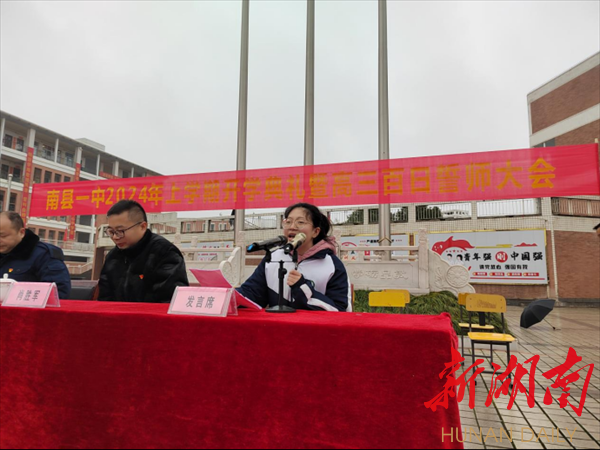 新湖南客户端3月4日讯(通讯员 王宏 李娜)3月4日,益阳市南县一中在学校广场上举行了2024年上学期开学典礼暨高三百日誓师会议。学校党委书记、校长黄学军,副校长卢万佳,纪委书记张杰献,副校长王文森、肖胜军出席,大会由张杰献主持。